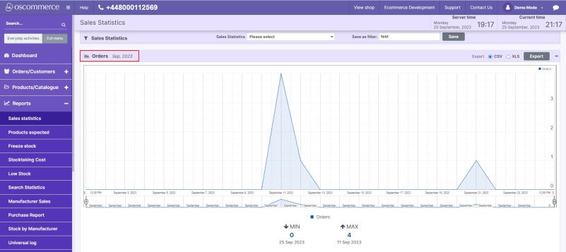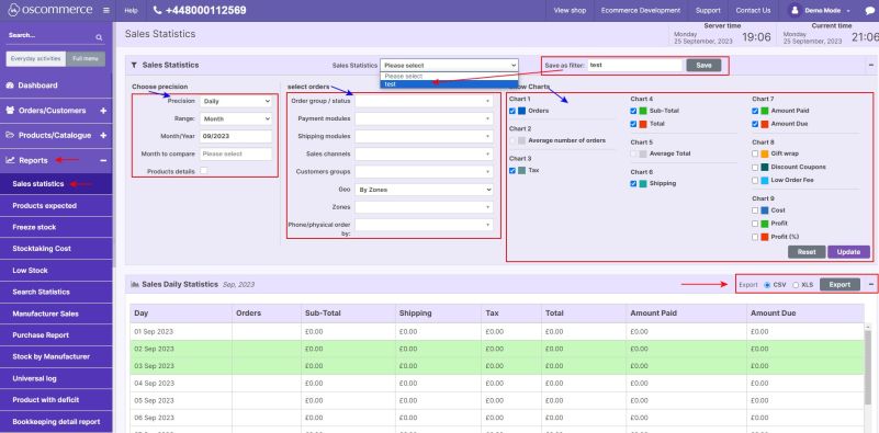 - Access the Sales Statistics Section Go to Reports → Sales statistics in the admin area of your website.
